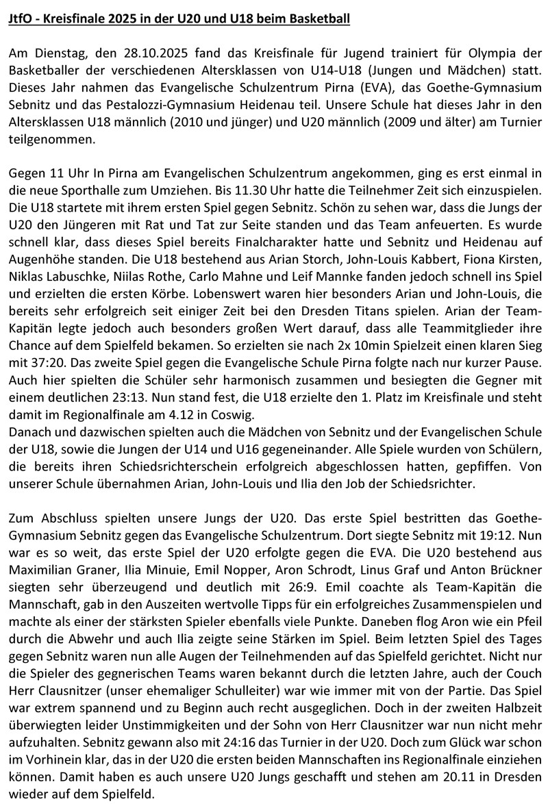 Kreisfinale 2025 in der U20 und U18 beim Basketball